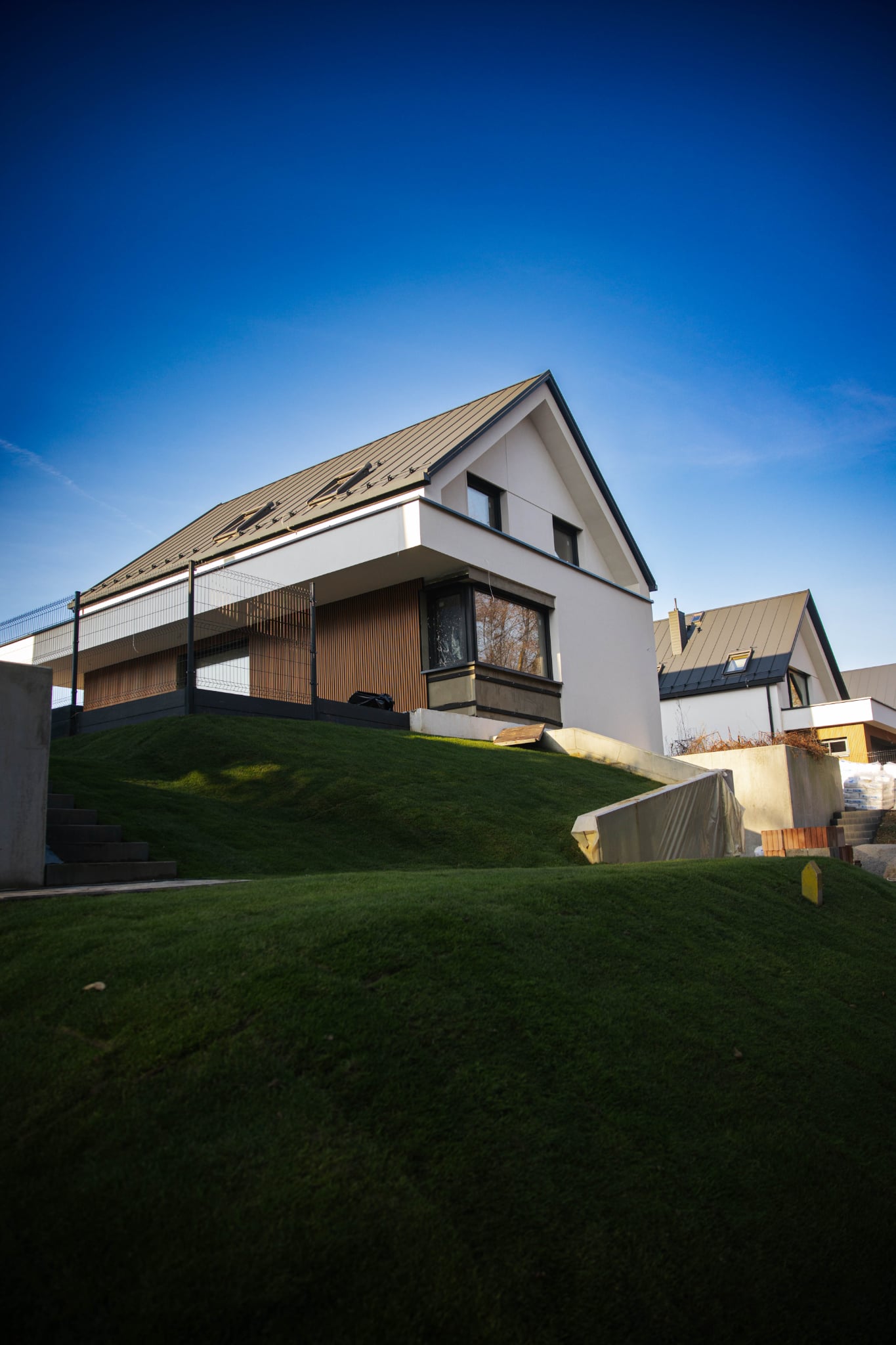 Trwa montaż dekoracyjnych elementów z blachy na elewacji, które w połączeniu z lamelami tworzą wyjątkową kompozycję – pełną lekkości, elegancji i nowoczesnego charakteru. Każdy element, nawet ten pozornie najmniejszy, ma wpływ na końcowy efekt i atmosferę, jaką tworzy budynek. Obecnie trwa montaż dekoracyjnych elementów z blachy na elewacji. W połączeniu z lamelami tworzą one spójną, nowoczesną kompozycję – elegancką, ale jednocześnie lekką i pełną wyrazu. Metaliczne akcenty subtelnie odbijają światło, nadając bryle budynku dynamiki i głębi, podczas gdy lamele wprowadzają ciepło i naturalny charakter. Bo architektura to nie tylko konstrukcja. To sztuka tworzenia przestrzeni, w której każdy detal ma swoje miejsce i cel.