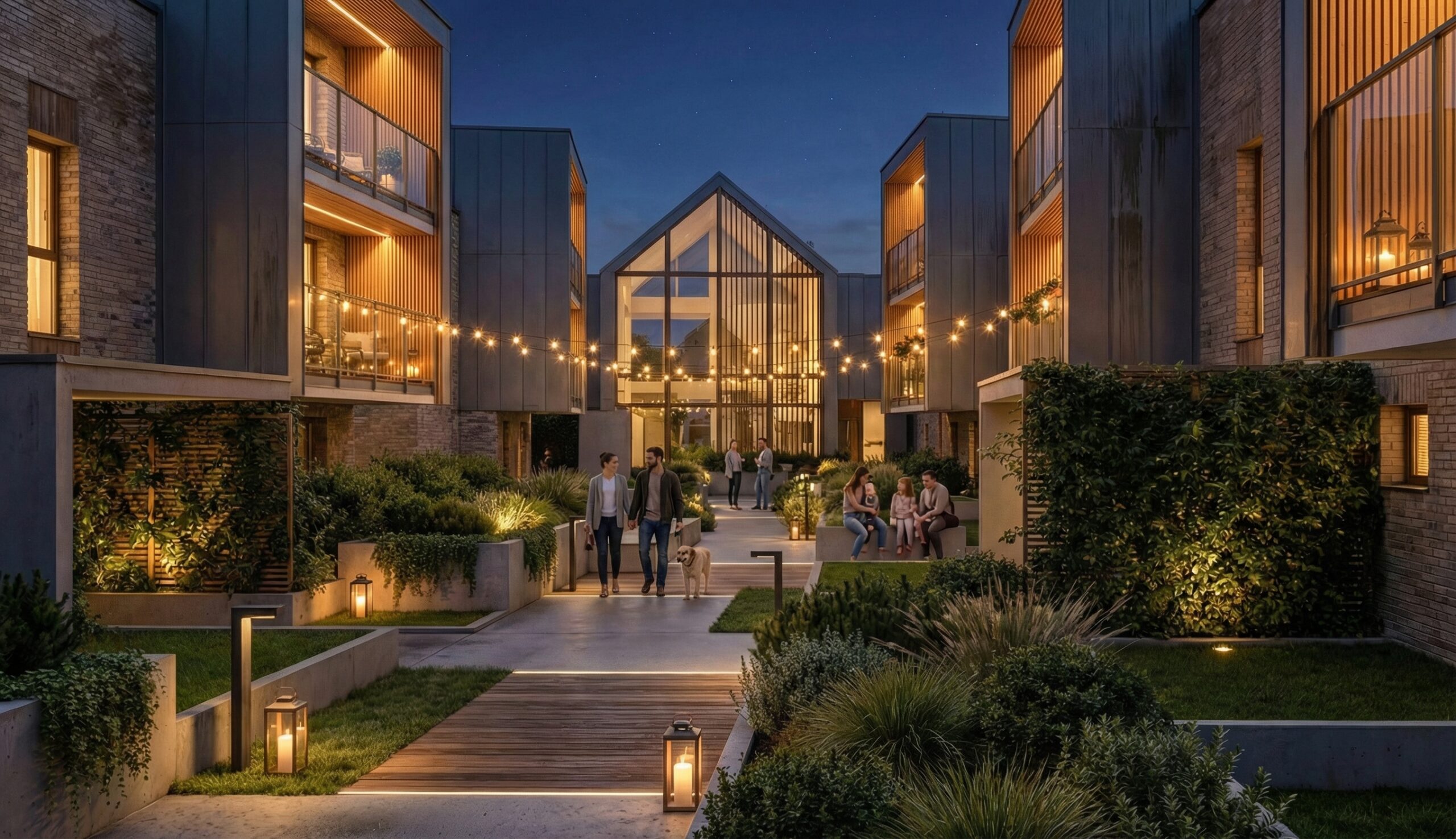 This courtyard, filled with greenery, will serve as a space for social interaction and recreation for the residents, while also acting as a zone insulated from external noise and street traffic.